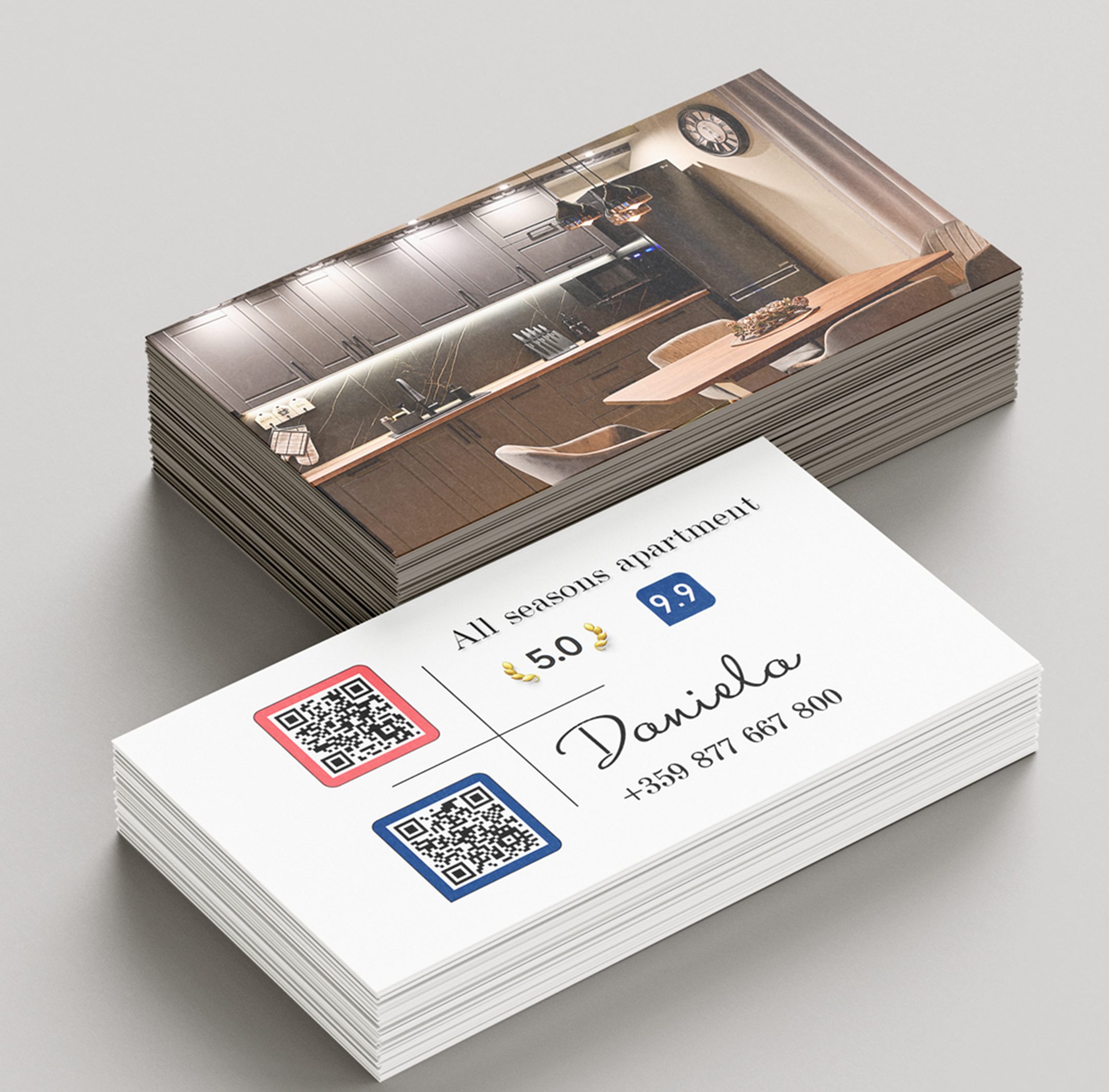 Business cards Of Cork Wine – Business card & wine glass pad – design and print Hairdresser – Business card – design and print Nadya Vlahovska Sworn translator – Business card – design and print All seasons apartment – Business card – design and print